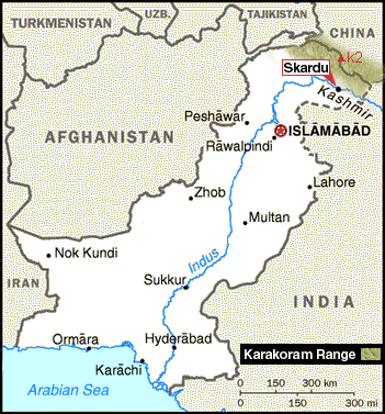 Está situada en el Himalaya y es la frontera entre Pakistán, Cachemira y China.